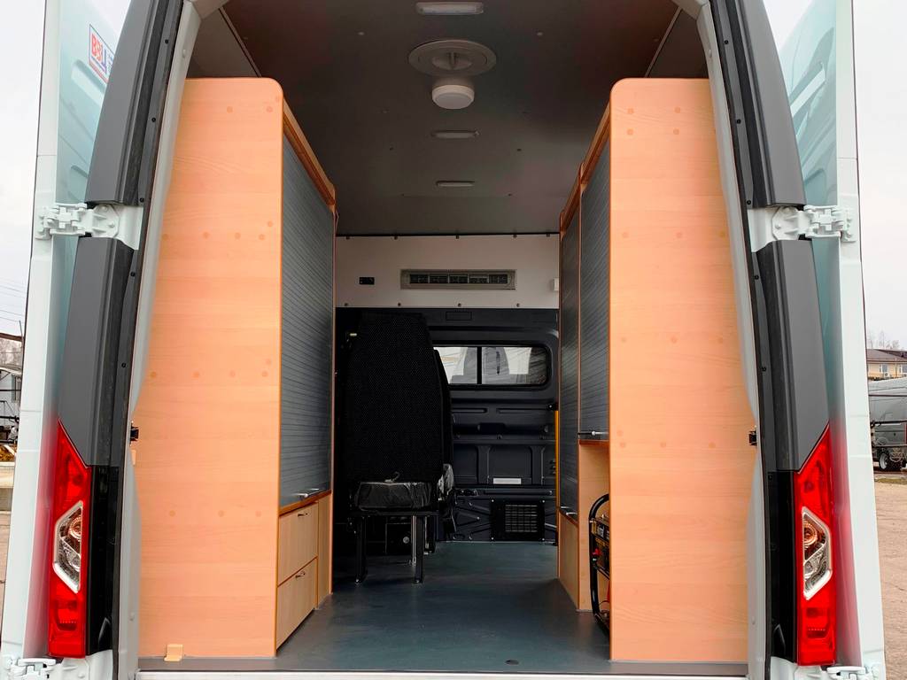 24. Спальное отделение в задней части автомобиля с осветительным плафоном;