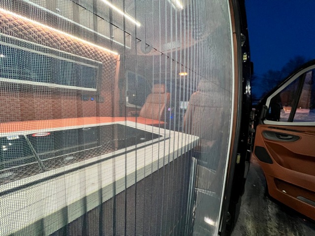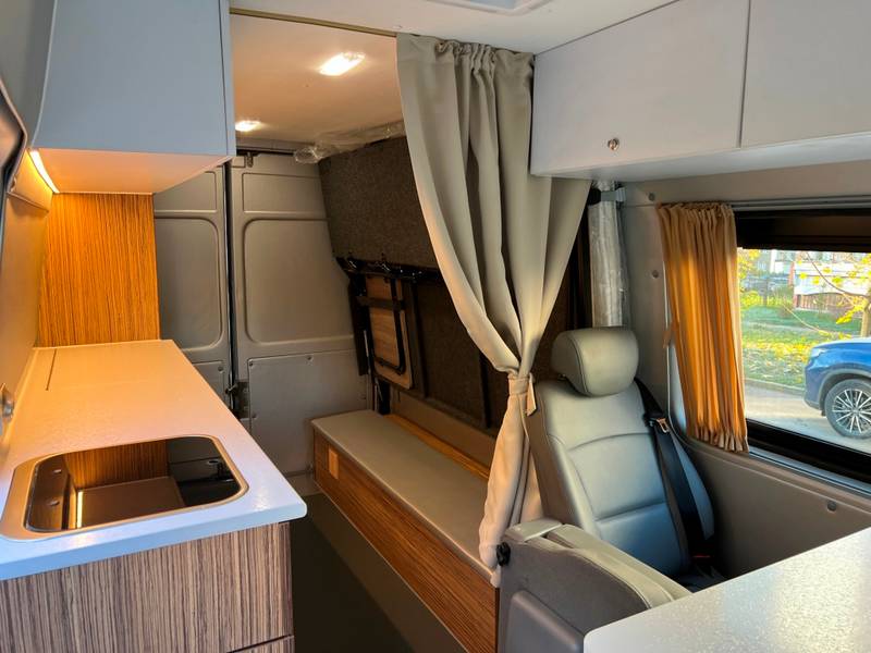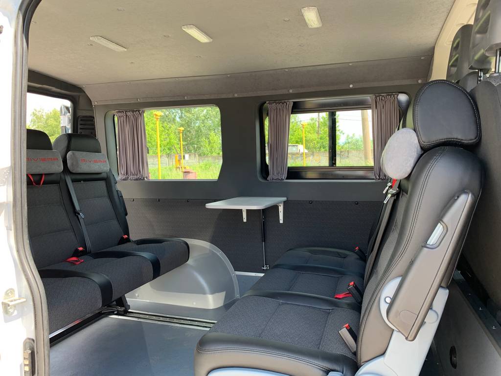 16. Шторы в оконных проемах сдвижной двери и напротив сдвижной двери (бежевые) , а также за водителем и передним пассажиром;