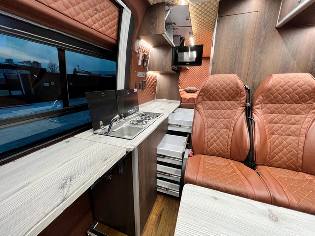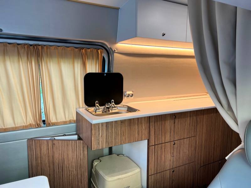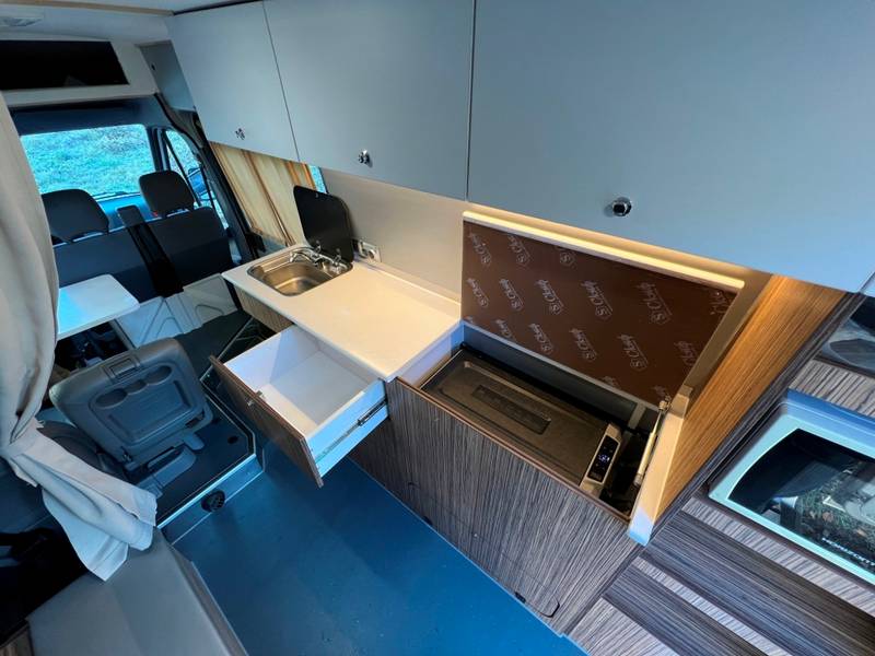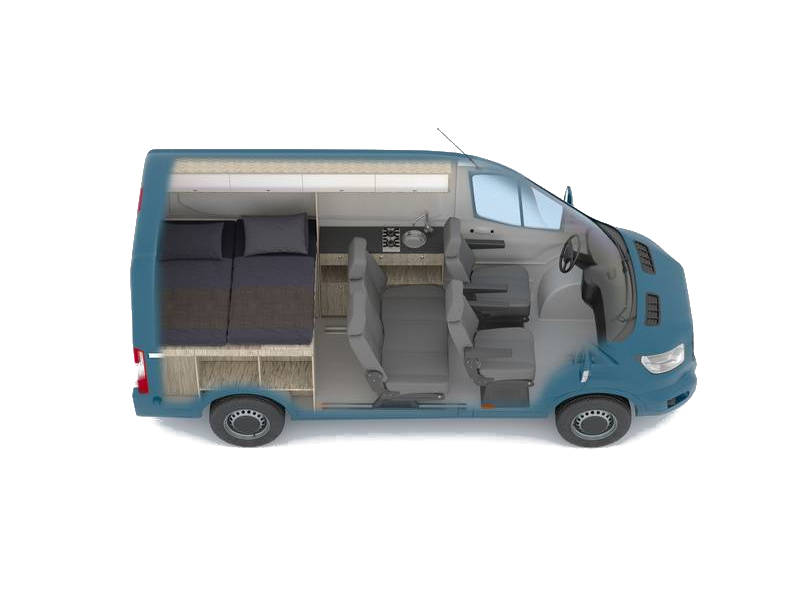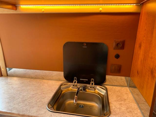 - Люк с интегрированным вентилятором (Комплект вентилятора FiammaTurbo-Kit) (1 шт.) над обеденной зоной, вентилятор крепится на раму люка (съемный);