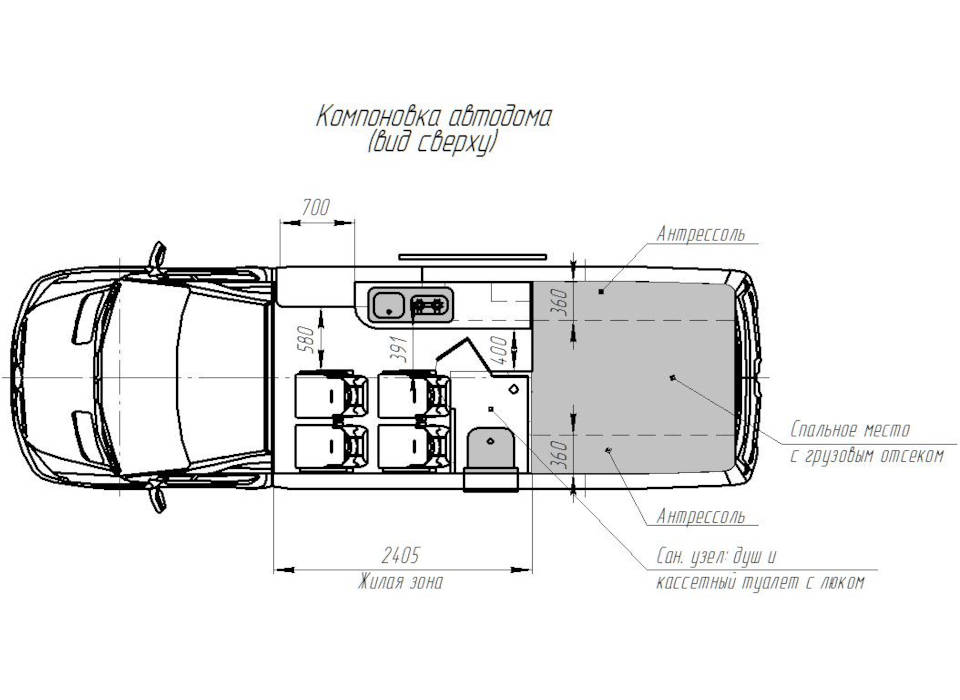 - Вентиляционно-аварийный люк(стекло). Три положения открывания.(1 шт.) над спальным местом;